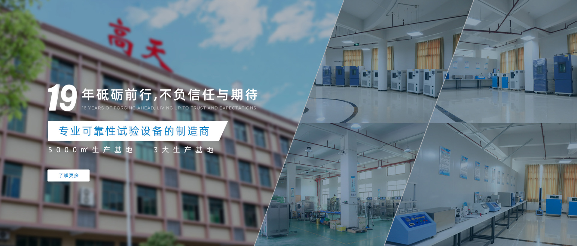 東莞市高天試驗(yàn)設(shè)備有限公司是一家可靠性試驗(yàn)設(shè)備的制造商,我們專注于可靠性試驗(yàn)已有19余年,在此期間,我們竭盡所能,努力為客戶提供完善的實(shí)驗(yàn)室規(guī)劃方案,匹配質(zhì)優(yōu)價(jià)廉的試驗(yàn)設(shè)備。高天擁有完整的研發(fā)團(tuán)隊(duì),其中有很多人都躋身試驗(yàn)設(shè)備行業(yè)多年,能為顧客提供完善的技術(shù)方案,以幫助廣大客戶在確保其產(chǎn)品品質(zhì)的前提下,有效降低經(jīng)營成本,提升經(jīng)營競(jìng)爭優(yōu)勢(shì)。高天生產(chǎn)的設(shè)備種類眾多,同時(shí)擁有實(shí)用新型專利證書,銷售范圍覆蓋全國。公司自成立以來堅(jiān)決以精美的外觀設(shè)計(jì),認(rèn)真務(wù)實(shí)的工作精神,良好周到的后續(xù)服務(wù),贏得了客戶良好的口碑。我們將一如既往,堅(jiān)持以“誠信經(jīng)營”為...